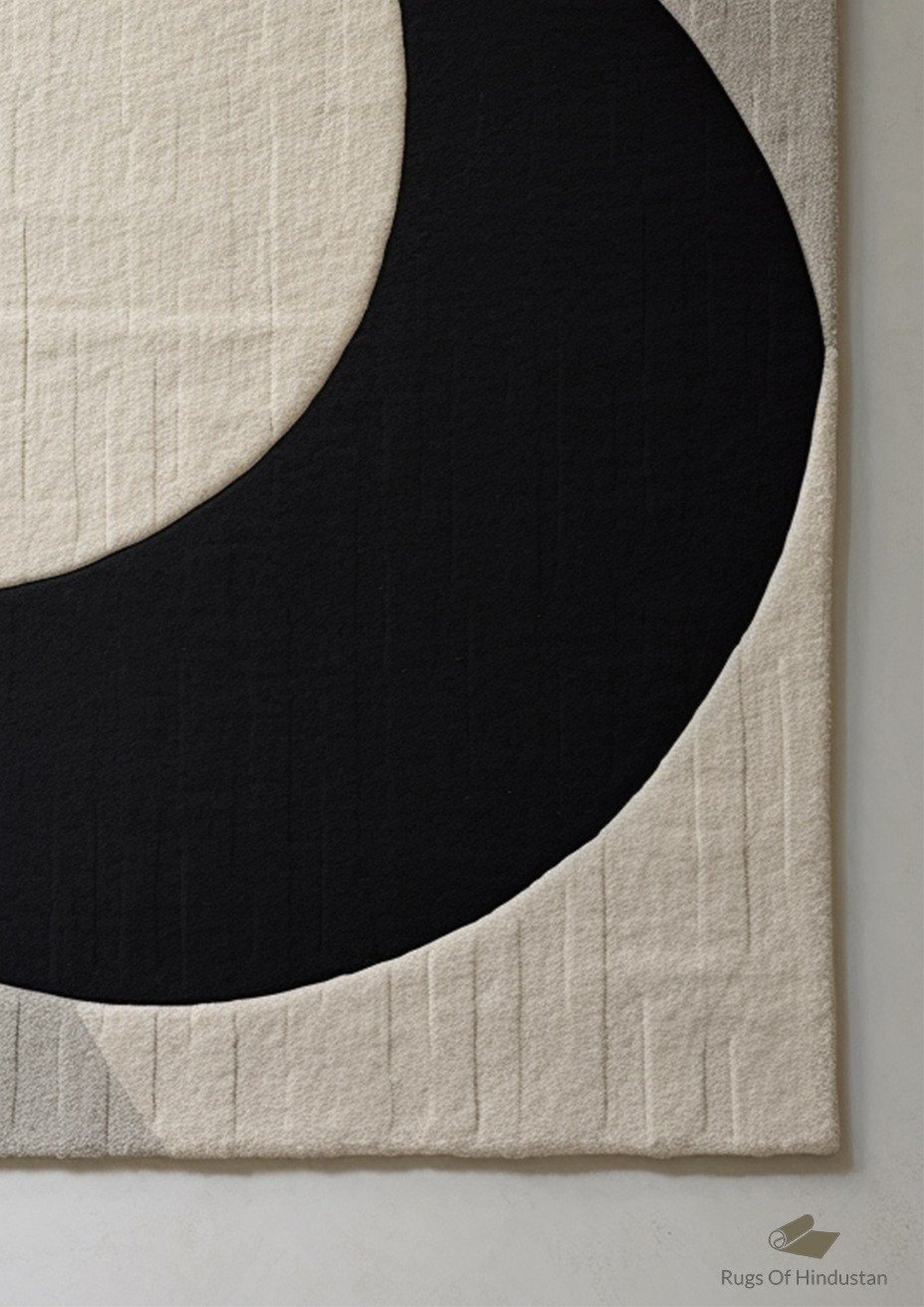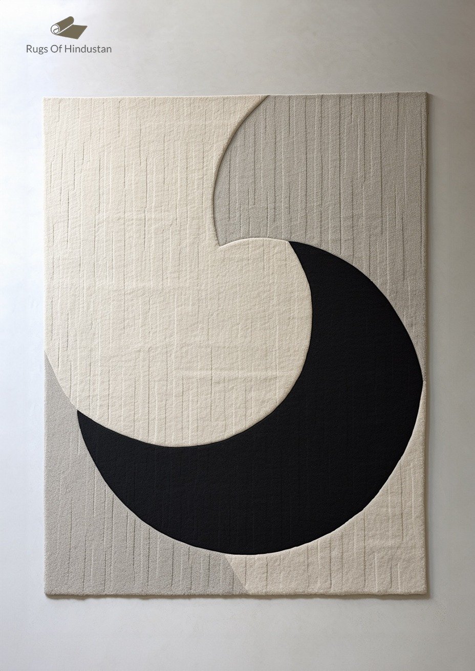 Minimalist Crescent Abstract Rug – Monochrome Elegance in Black and Ivory Tones