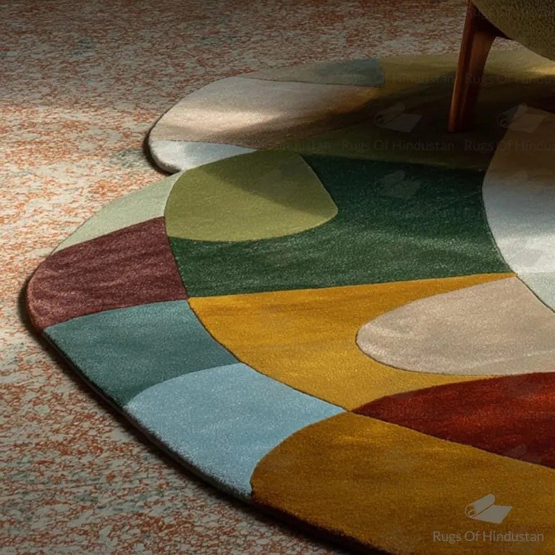 Sculptural Abstract Wool Rug – Irregular Modern Carpet in Bold Earthy Tones